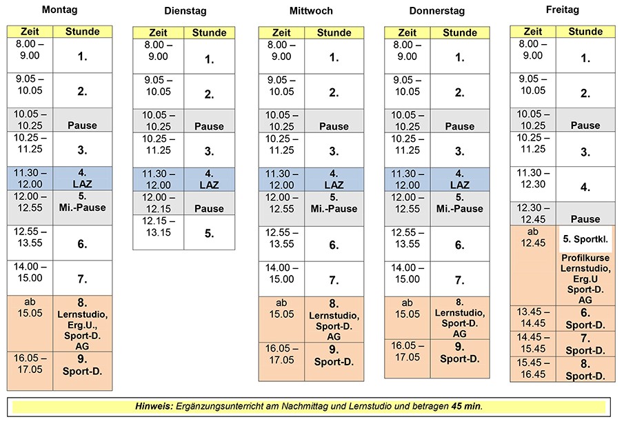 Standard Zeitraster der THS – Schuljahr 2025/26